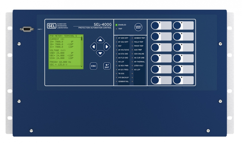• SEL-400G는 수력, 양수 발전, 대형 증기 터빈 및 연소 가스 터빈(CGT) 등 모든 유형의 발전기를 위해 설계된 최첨단 보호 시스템입니다. 이 장치는 단일 프로세서 내에서 발전기 보호, 발전기 강압 변압기(GSU) 보호, 자동 동기화 및 사고 기록 기능을 하나로 통합한 것이 특징입니다. 18개의 전류 입력과 6개의 전압 입력을 갖추어 복잡한 계통 구성에서도 유연한 보호 설계를 지원하며, 발전기의 기동부터 정상 운전까지 모든 단계에서 신뢰성 있는 보호를 제공합니다.