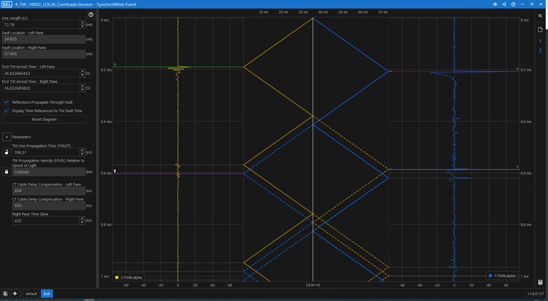 뷸리 선도(Bewley diagram)를 활용하여 사고 지점에서 발생한 진행파의 반사 및 도달 시간을 분석함으로써 고장 위치를 정밀하게 파악하고 보정할 수 있습니다. -