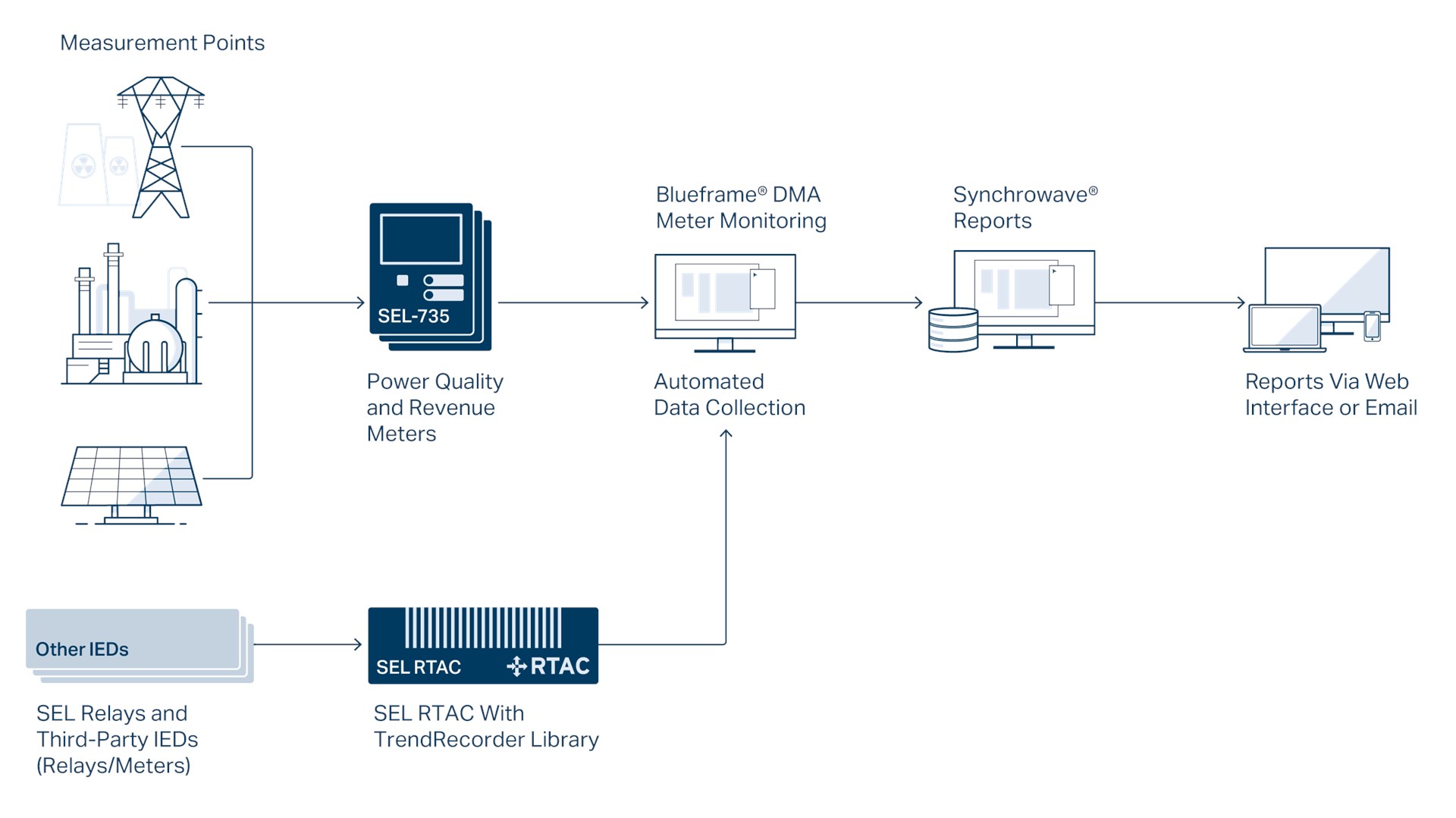 SEL 실시간 자동화 컨트롤러(RTAC)를 활용하여 SEL 장치뿐만 아니라 타사 미터기에서 수집된 데이터까지 통합하여 관리할 수 있습니다.